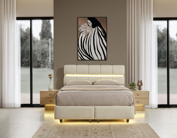 BOSNA yatak odası takımı, şıklığı ve işlevselliği bir araya getiren özel bir tasarımdır. Takım, kapaklı gardırop, şifonyer ve aynası ile iki adet komodin ve boy aynasi askiligi, Yatak, Baza ve Başlıktan oluşmaktadır. Başlık, tüm baza modelleriyle uyumlu olacak şekilde tasarlanmıştır.