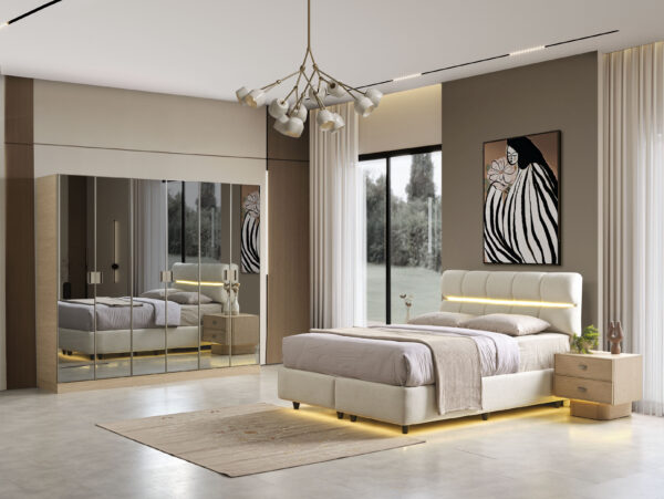 - Kapaklı gardırop – şifonyer ve aynası – 2 adet komodin- boy aynasi, askilik, Yatak- Baza- Başlık takım fiyatına dahildir.