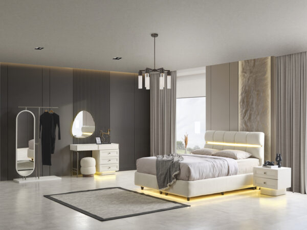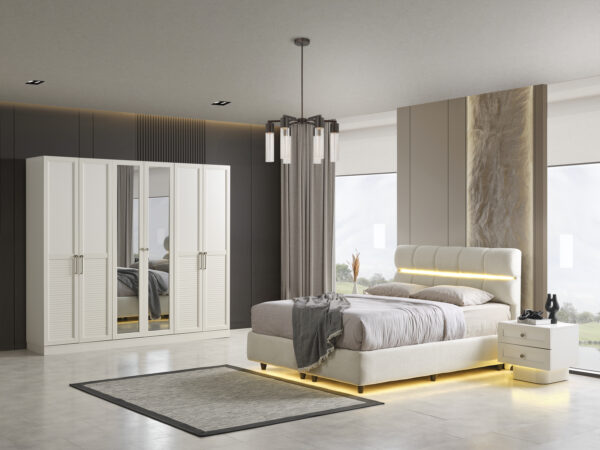 - Kapaklı gardırop – şifonyer ve aynası – 2 adet komodin- boy aynasi, askilik, Yatak- Baza- Başlık takım fiyatına dahildir.
