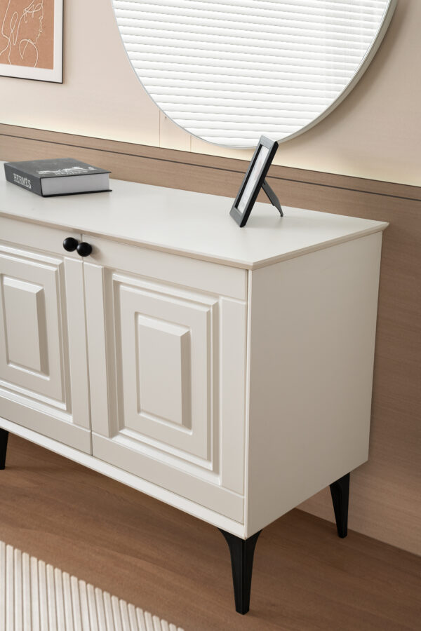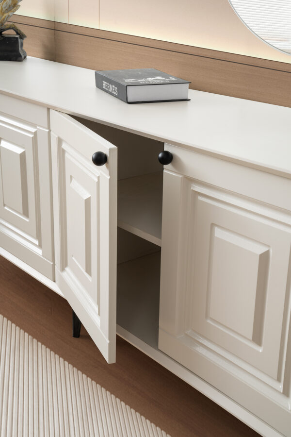 - Modern tarzıyla dikkat çeken estetik bir görünüme sahiptir. Meşe ağacının doğal dokusuyla farklı malzemelerin uyumlu birleşimi, mekânınıza zarafet ve sıcaklık katmaktadır.