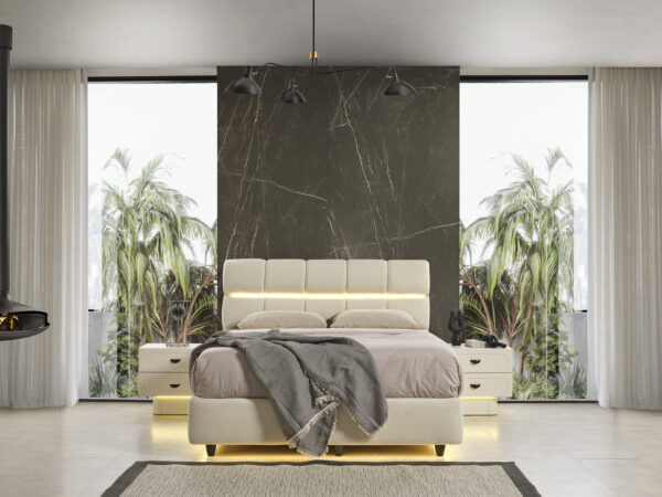 TALIN yatak odası takımı, şıklığı ve işlevselliği bir araya getiren özel bir tasarımdır. Takım, kapaklı gardırop, şifonyer ve aynası ile iki adet komodin ve boy aynasi askiligi, Yatak, Baza ve Başlıktan oluşmaktadır. Başlık, tüm baza modelleriyle uyumlu olacak şekilde tasarlanmıştır.