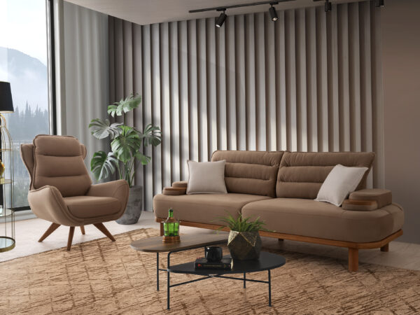 - İnce işçilikle hazırlanmış ahşap ayaklar, koltuk takımına zarafet katarken dayanıklılık sağlar.